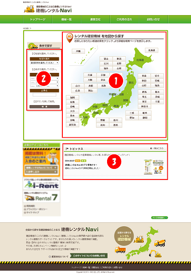 建機レンタルNaviは全国の建機レンタル事業者の情報を集めてインターネットで提供するサービスです。用途・目的に合わせた建設建機が 簡単に検索できます。