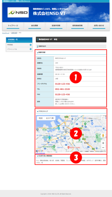 検索結果から、営業所の情報を確認する際に、この画面が表示されます。 |
