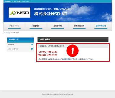 「お問い合せページ」をクリックすることで、会社にお問い合せできます。 |